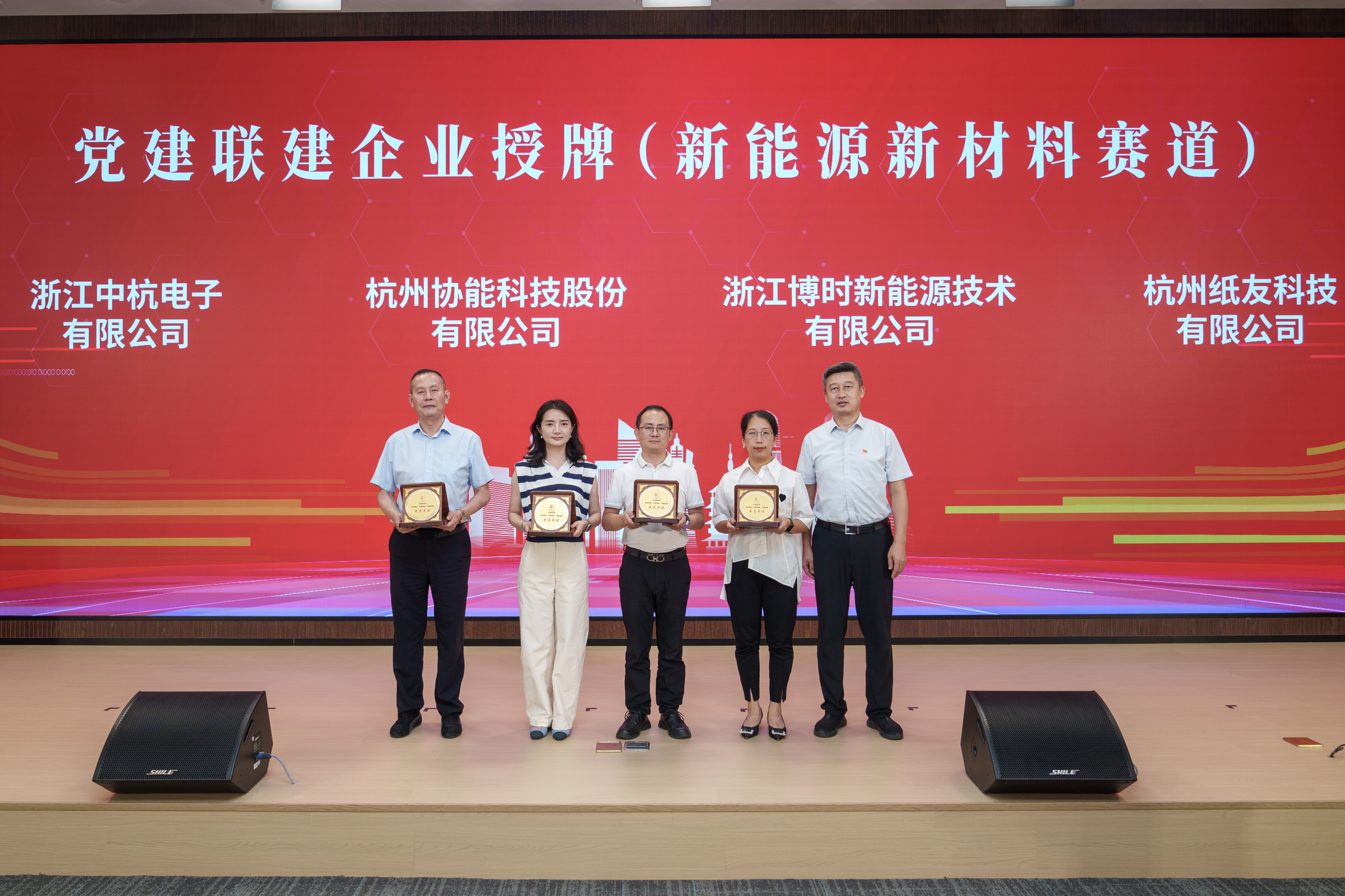 活动现场,杭州市国资委党委副书记宣寅,余杭区人大常委会副主任、余杭经济开发区党工委书记朱红耀,华体会网页版党委副书记、副董事长、总经理郭东晓,市经信局中小企业发展处副处长沈洋分别为视觉智能、低空经济、高端装备制造、新能源新材料四个赛道的党建联建成员单位授牌。